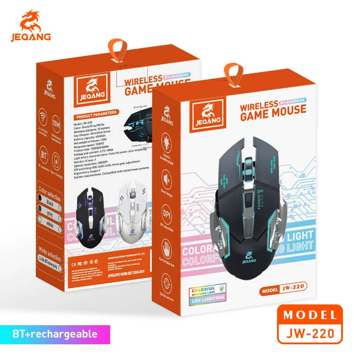 JEQANG Wireless RGB Game Mouse 2.4G+Bluetooth+Charging Black 1 Piece