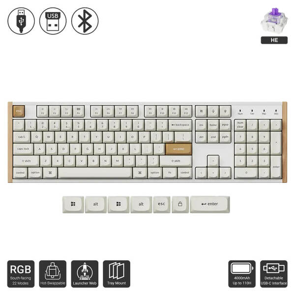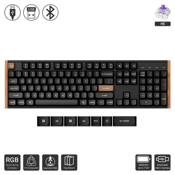 Transform your gaming and typing experience with the Keychron K10 HE. Combining classic mechanical feel with cutting-edge magnetic technology, it offers exceptional performance in a sleek design—enhanced by elegant natural rosewood accents.