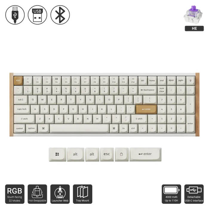 A fully customizable 96% layout wireless keyboard with magnetic switches — a breakthrough in switch technology, which—instead of physical contacts—uses magnetic sensors to measure actuation depth, putting you in total control over the response of each and every switch.