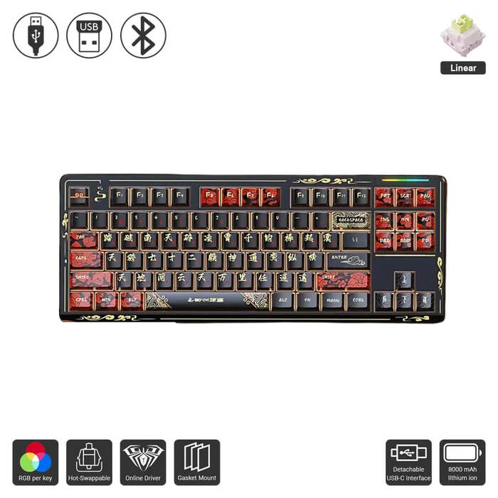 Three-Mode Connectivity: Supports wired (USB-C), Bluetooth, and 2.4GHz wireless modes, ensuring flexibility and compatibility with various devices. Hot-Swappable Design: Allows users to easily swap switches without soldering, making it perfect for customization enthusiasts. RGB Lighting: Features vibrant, customizable RGB backlighting with multiple effects, adding an aesthetic flair and improving visibility during use. Anime-Themed Design: Often comes with themed keycaps, such as anime girl designs, appealing to fans of personalized or artistic setups. Gasket-Mounted Build: Offers a premium typing experience with better sound dampening and a softer feel, ideal for both gaming and typing.