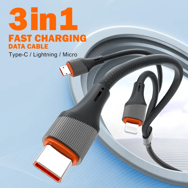 LDNIO 3 IN 1 Fast Charging Type-C/Lightning/Micro 1.2M Black 1 Piece