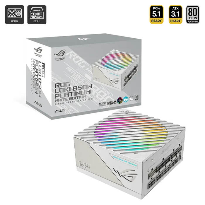 Taking after the ROG Thor, the ROG Loki SFX-L 850W Platinum White Edition brandishes the same enthusiast-grade components and features, all packed into an SFX-L form factor. Boasting quiet operation and high performance, the Loki is primed to power your next SFF build.