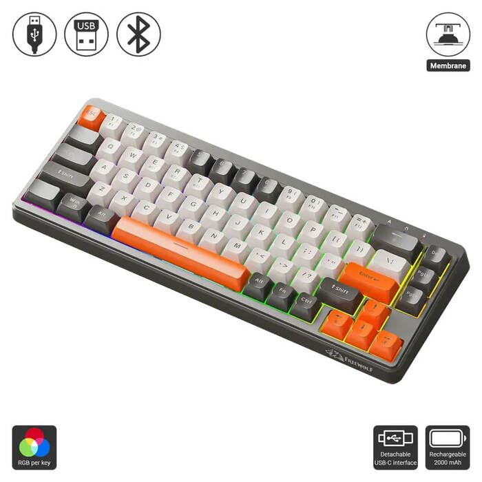 - Cool Rainbow Lights & Long Life Battery :This FreeWolf gaming keyboard features cool rainbow lighting,include constant mode and breathing mode,you also can adjust the brightness and speed of the backlight by the key combinations FN.In addition, the keyboard has a built-in 2000mAH battery and can be used for more than 60 hours with the backlight on, and up to 200 hours with the backlight off,you can use it freely without worrying about battery life.