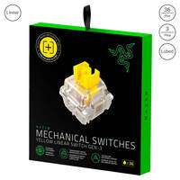 Razer Mechanical Switches deliver fast, durable, and responsive performance with up to 100M keystrokes. Available in Green (clicky), Orange (tactile), and Yellow (linear), they feature enhanced RGB lighting, factory lubrication, sound dampening, and broad hot-swap/keycap compatibility.