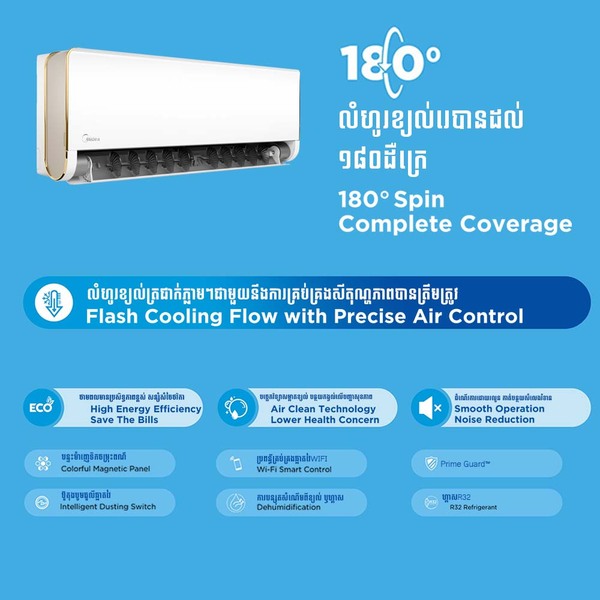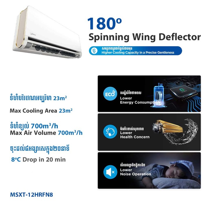 VMALL ម៉ាសុីនត្រជាក់ Midea 1.5HP MSXT-12HRFN8