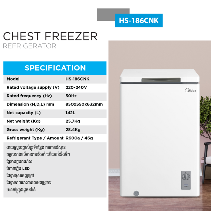 VMALL Midea Non-Inverter Chest Freezer 143L HS-186CNK