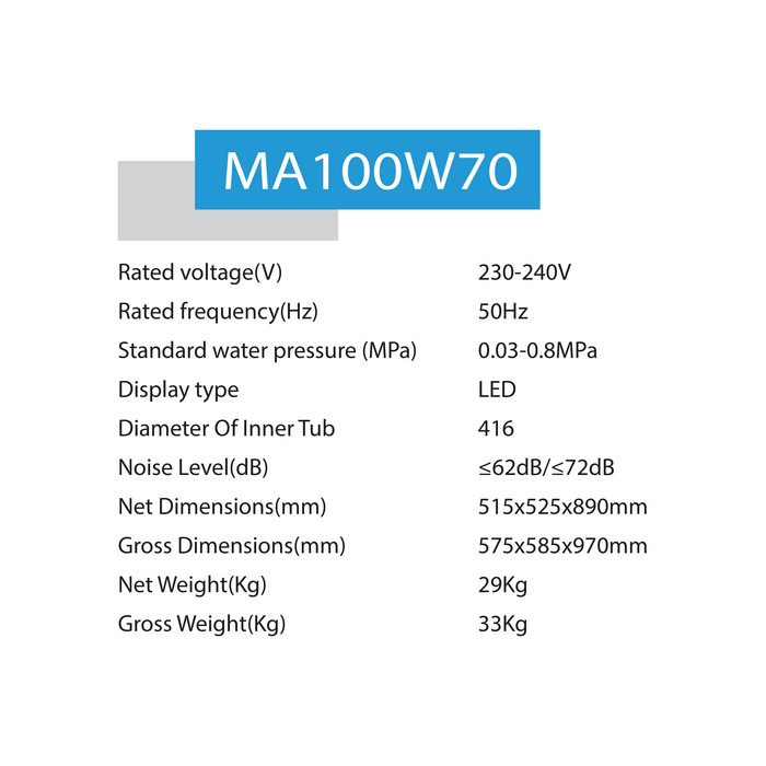 VMALL ម៉ាសុីនបោកខោអាវ Midea 7KG MA100W70