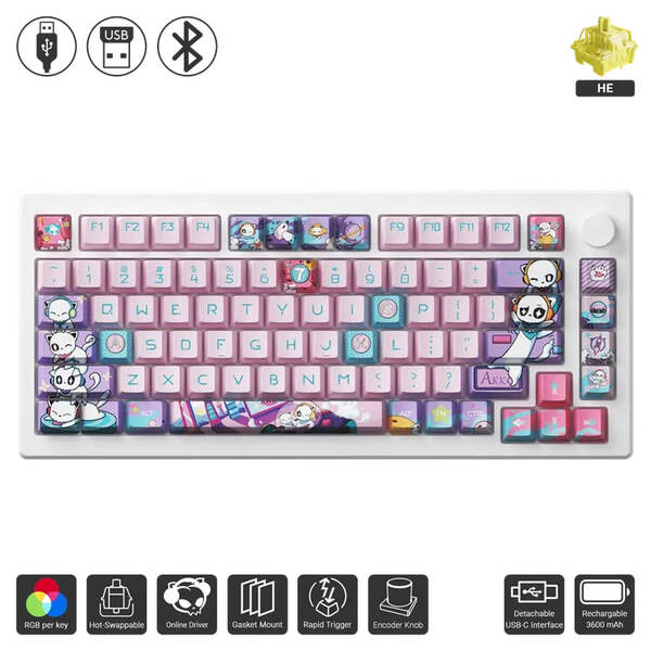 Akko Magnetic Switches Rapid Trigger Gaming Keyboard, MOD007B PC Akko 7th Anniversary Wired/Wireless 75% Mechanical Keyboard with Knob, RGB Backlit