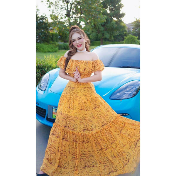 [ បិទស្មា | Off shoulder ] SET Chiffon #Yellow (00-223) |
