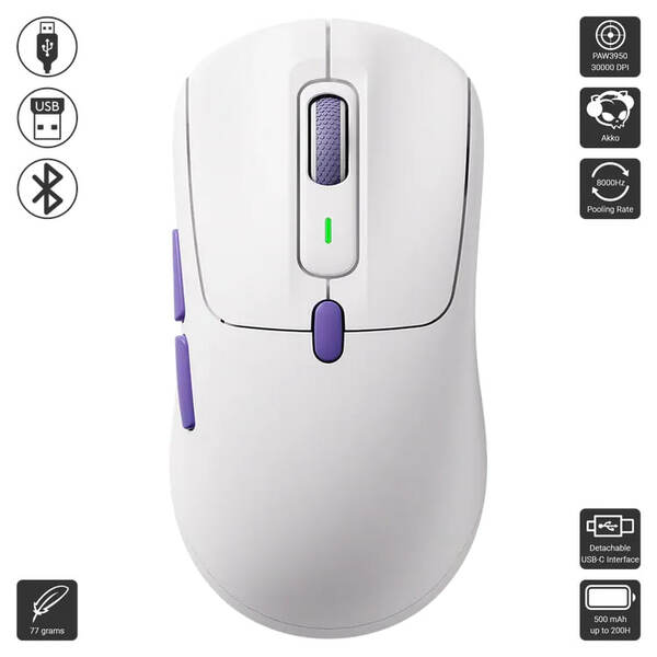 The Akko Pulse01 is a high-performance tri-mode gaming mouse featuring a custom PAW3950 sensor, up to 30,000 DPI, and ultra-fast 8,000Hz polling. With ergonomic design, smooth tracking, and Kailh GM switches rated for 100M clicks, it delivers top-tier precision and comfort for serious gamers.