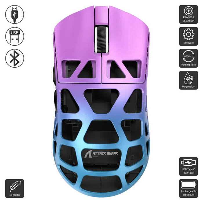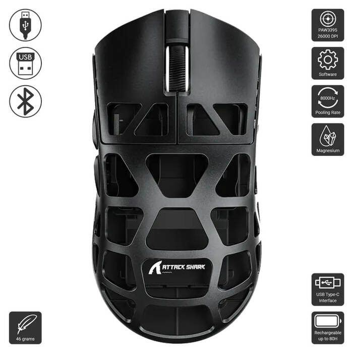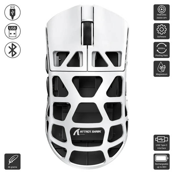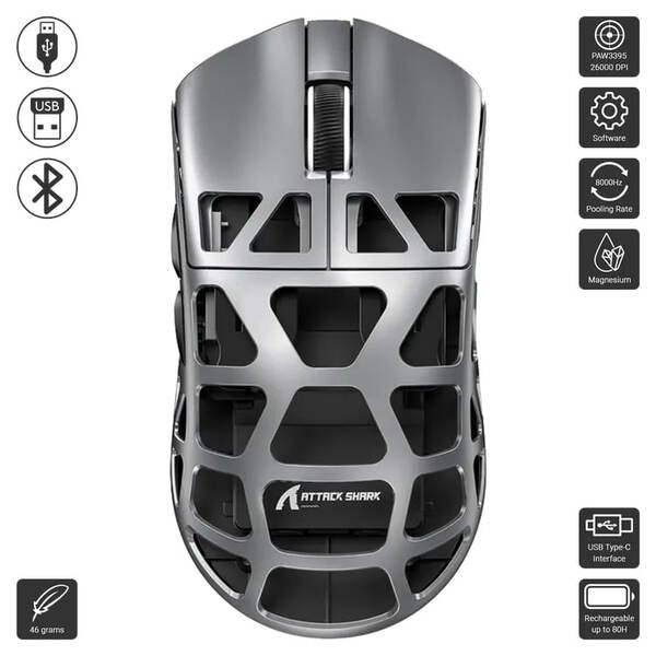 - Ultra-Lightweight Design: Weighs just 46g, constructed from magnesium alloy for strength and reduced fatigue during extended gaming sessions.
