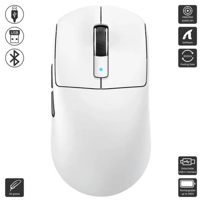 39g SUPERLIGHT Mouse, PixArt PAW3950MAX Gaming Sensor, Nordic 52840 Chip, DPI up to 42000, 8000Hz Polling Rate, Ice-feeling Coating