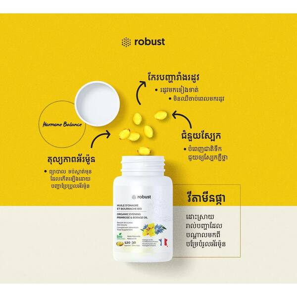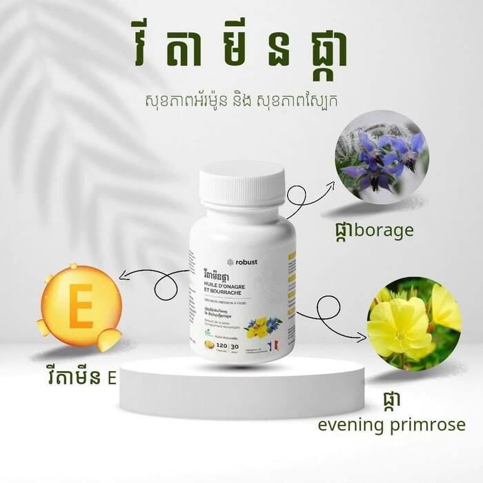 ដូច្នេះញ៊ាំវីតាមីនផ្កា Robust បន្ថែមពីខាងក្នុង ដើម្បីរក្សាតុល្យភាពអរម៉ូន ជួយដោះស្រាយបញ្ហាមុន និងជួយឱ្យស្បែកភ្លឺថ្លាមានសំណើមពីខាងក្នុង។