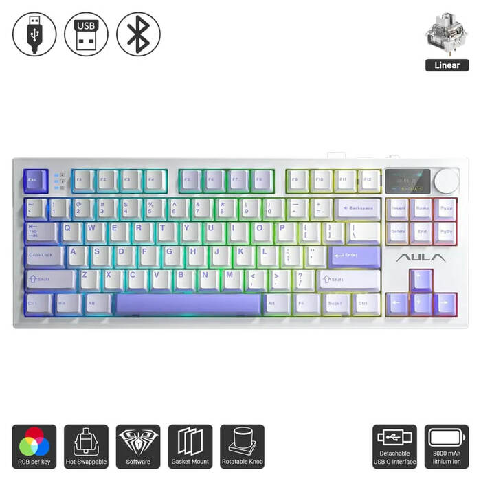 - GASKET DESIGN FOR ENHANCED TYPING COMFORT : The F87 Pro features a gasket design, incorporating an extended silicone pad for a soft and delicate touch. This innovative structure ensures each keystroke is comfortable and satisfying, providing a unique elastic feel.