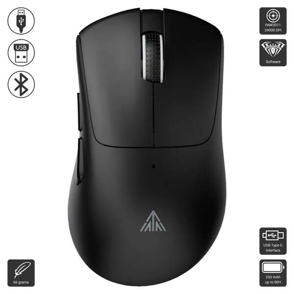 - Lightweight Ergonomic Design: Weighing only 66g, the mouse offers an ergonomic, lightweight build for comfort during long gaming sessions or extended work periods.
