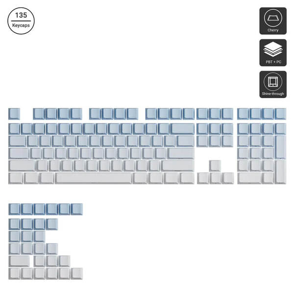 A refreshing blend that transitions smoothly from soft sky blue to crisp white, this gradient design brings a calm yet modern aesthetic to mechanical keyboards.