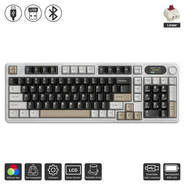 99 Keys Wireless Mechanical Keyboard with LED Color Display & Number Pad