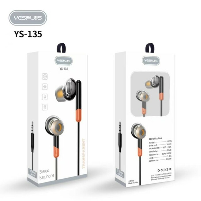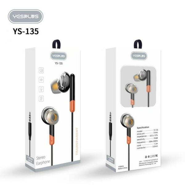YESPLUS Stereo Earphone Black 1 Pair