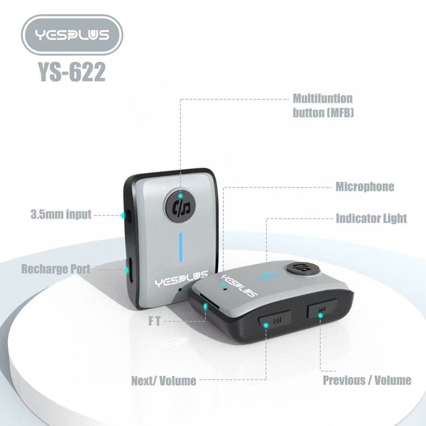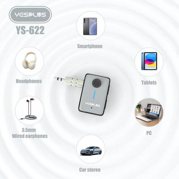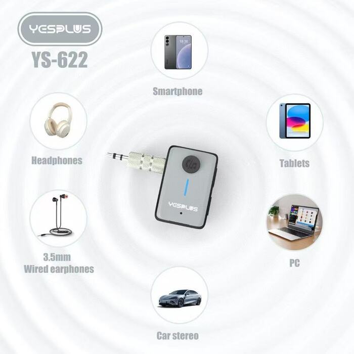YESPLUS Wrieless Audio Receiver 3.5mm for multiple devices plug and play Silver 1piece
